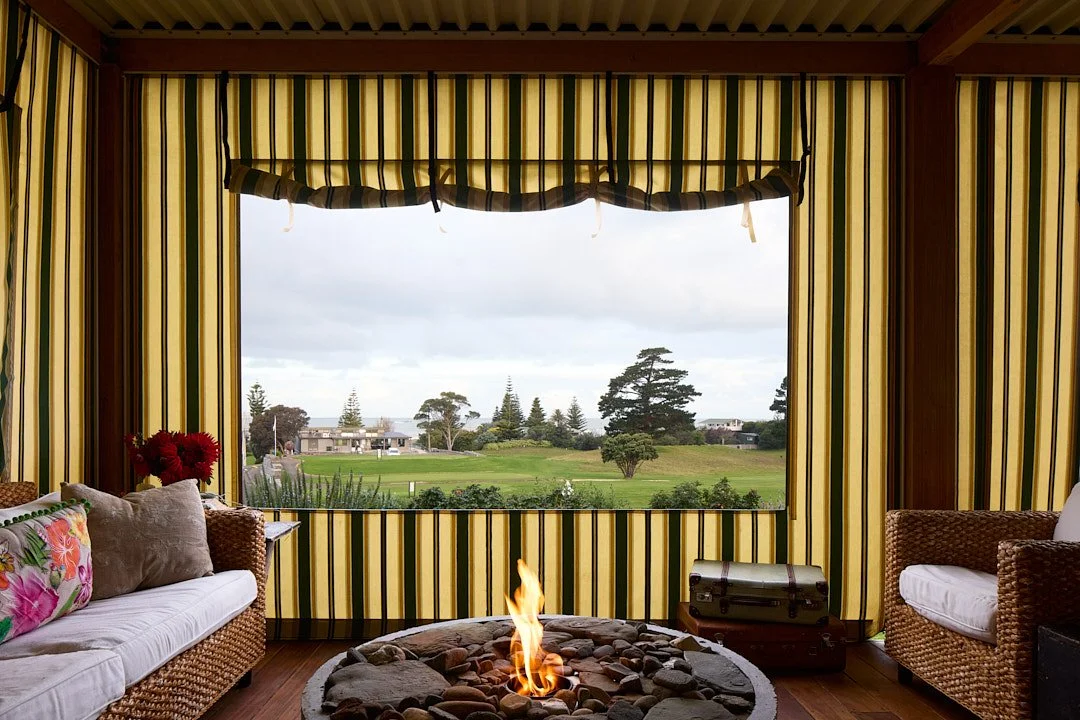 This is an exercise in re-thinking what you really need to create a place at the beach. The main structure is designed to provide shelter from the wind, heat and sometimes - rain. It’s all very utilitarian - no linings; no cavity cladding; no exterior walls or windows. The kitchen and ablutions spaces are behind sliding panels which are opened up during occupation. The remainder is effectively a covered deck with canvas “walls” (by Dwights Outdoors) that can be opened up to a greater or lesser degree depending on wind direction. The roof over the deck is a warm span structure (by Viking) that is essentially a free spanning metal roof with polyiso insulation and membrane on top - it’s designed to take the sting out of the mid-summer sun and has no requirement for roof framing. It also provides a great surface for uplighting at night via LED strips concealed in the driftwood sticks suspended below the ceiling.